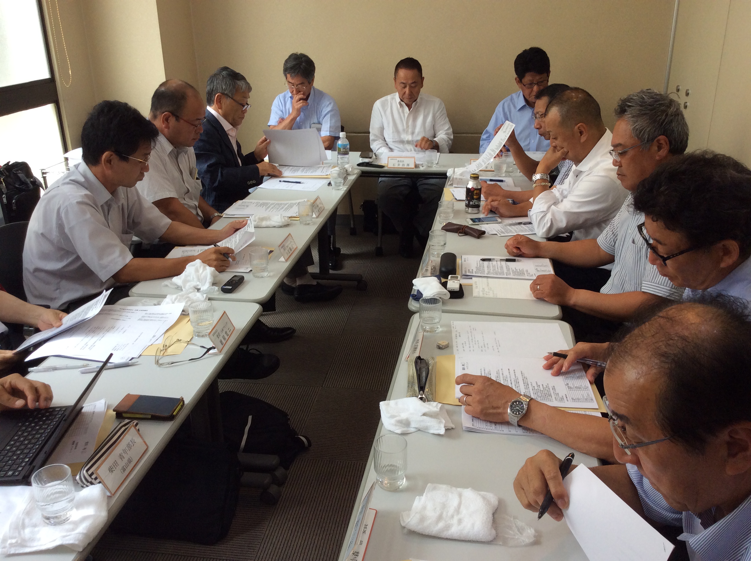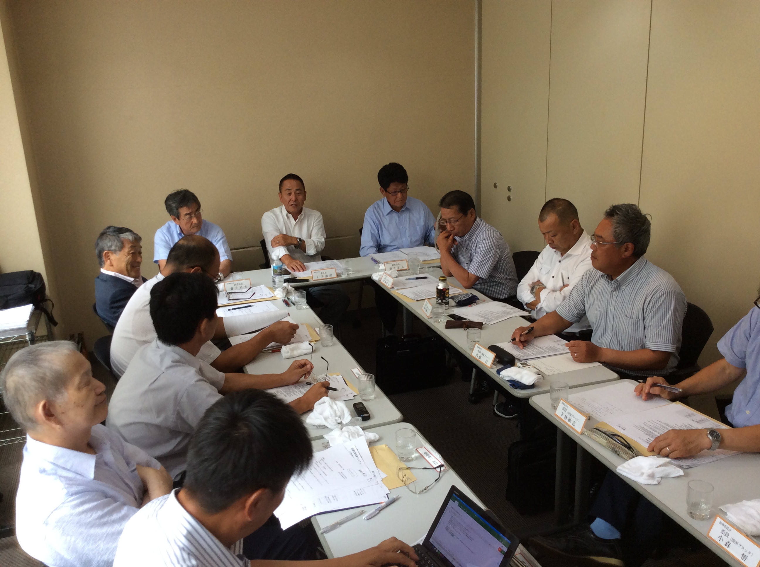 現在山梨県瓦工事業連合会の会長を仰せつかっている私ですが、全瓦連関東ブロックの指導委員長も兼任しております、今日の会議は全瓦連の指導委員会、全国の各ブロックの委員長が集まり委員会の方針を話し合っています、右側手前から3人目が私です。