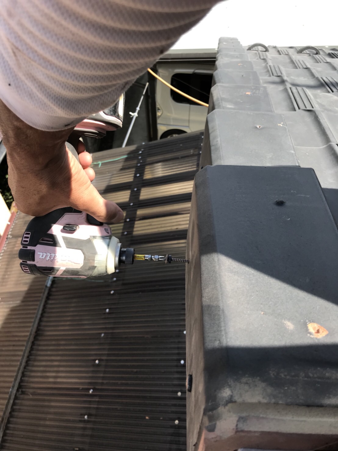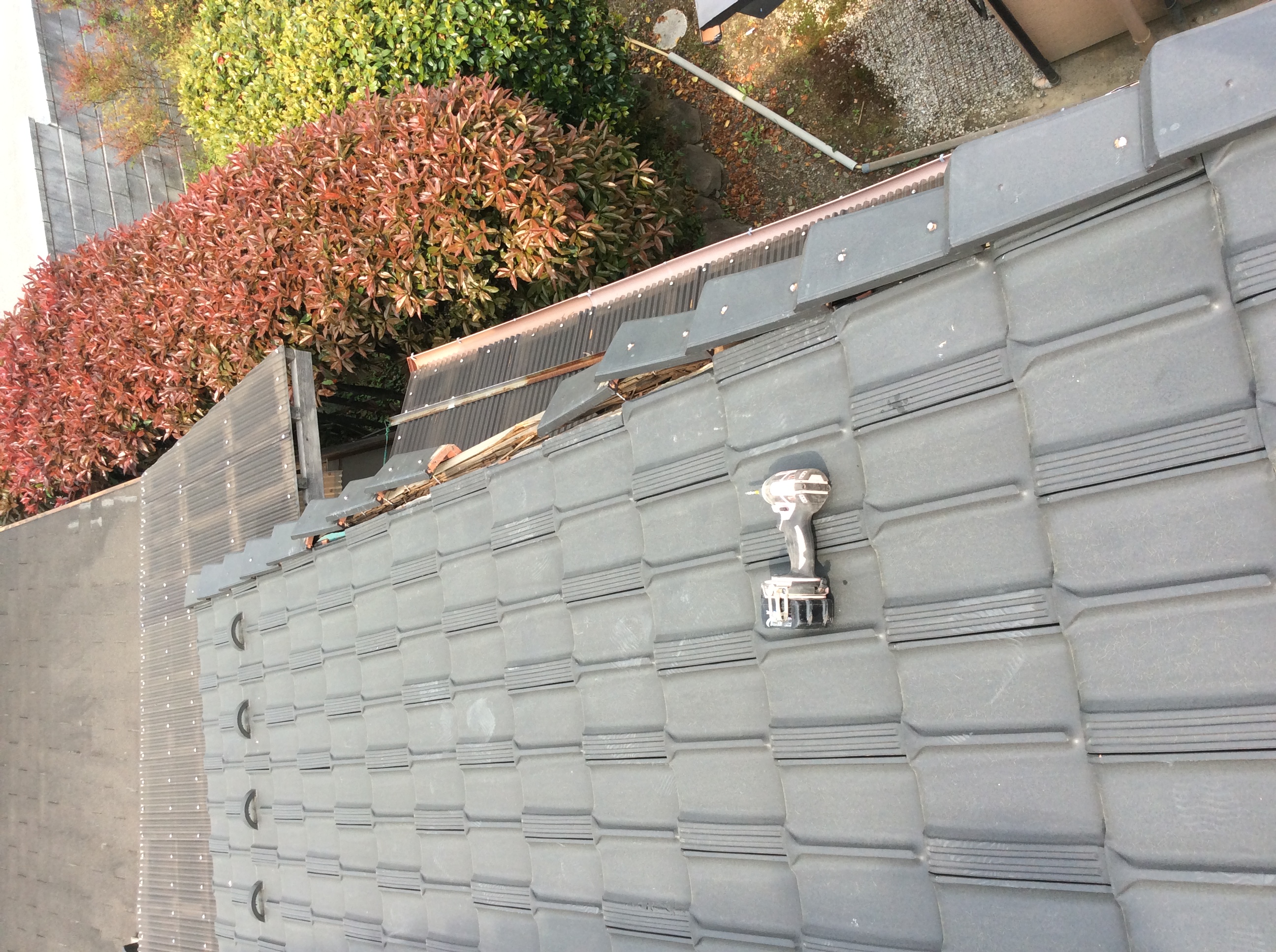 ⑥ケラバ瓦をビス3点止めで納める。