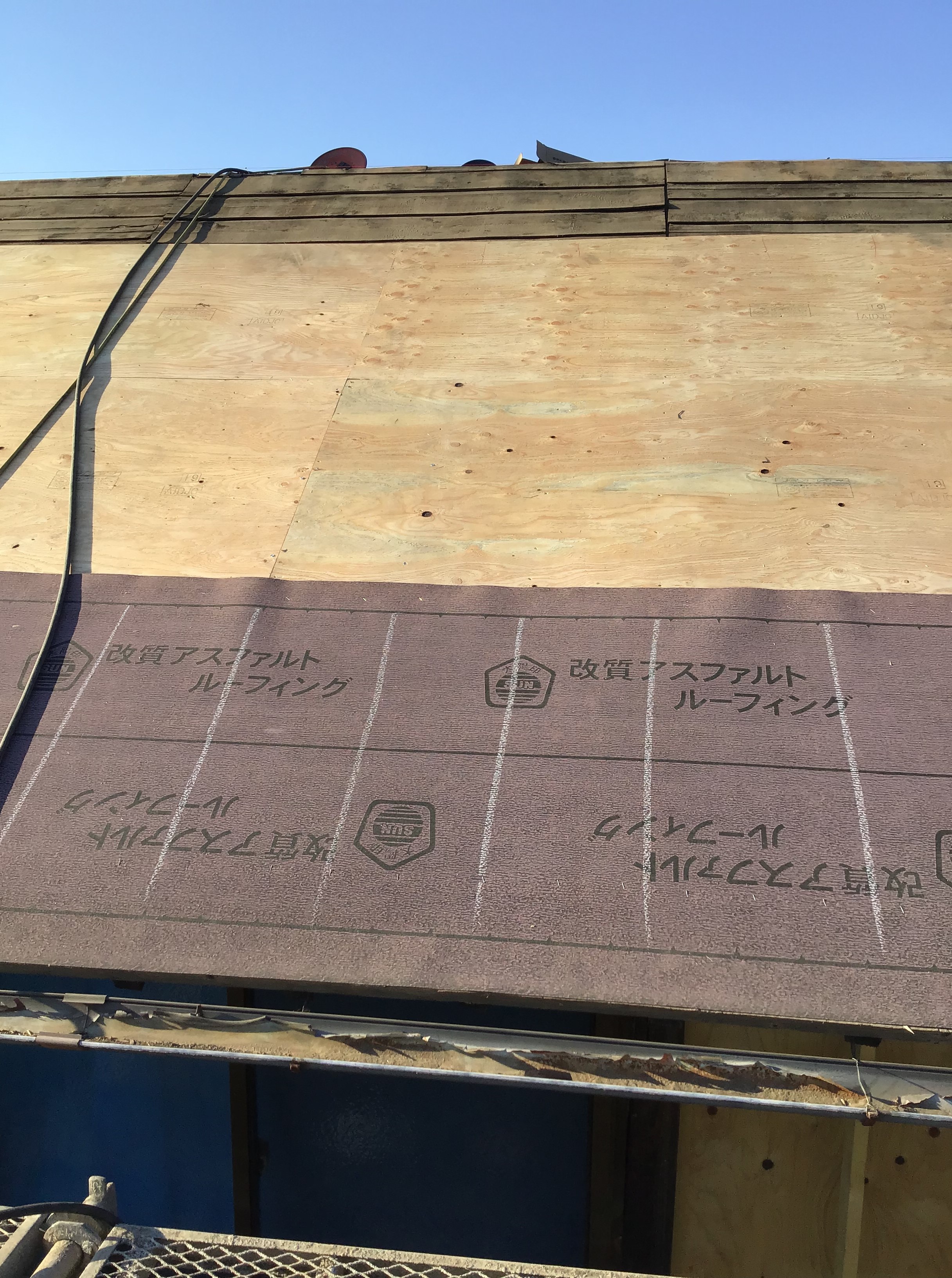 野地板の補強や、野地面の不陸の調整のために、ベニヤを張り増しします。