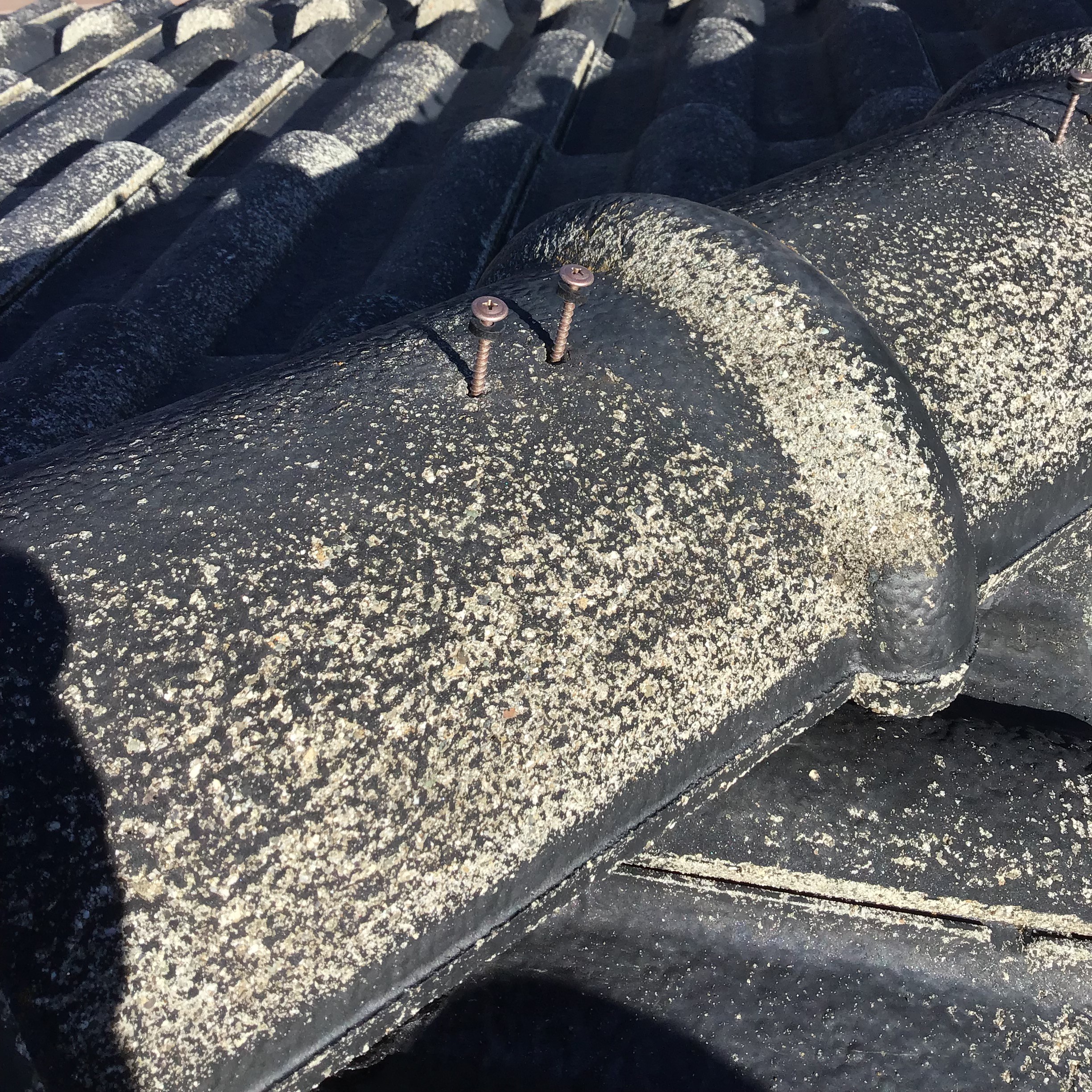 瓦を角材の上に置いたら、パッキン付きのビス二本で止めていきます、これで完璧です、あとは塗装屋さんにきれいに塗ってもらいます、きっときれいな屋根に仕上がると思います、ありがとうございました、感謝です。